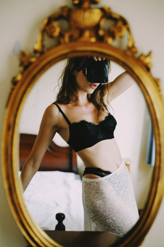 Lace Balconette Bra in Black